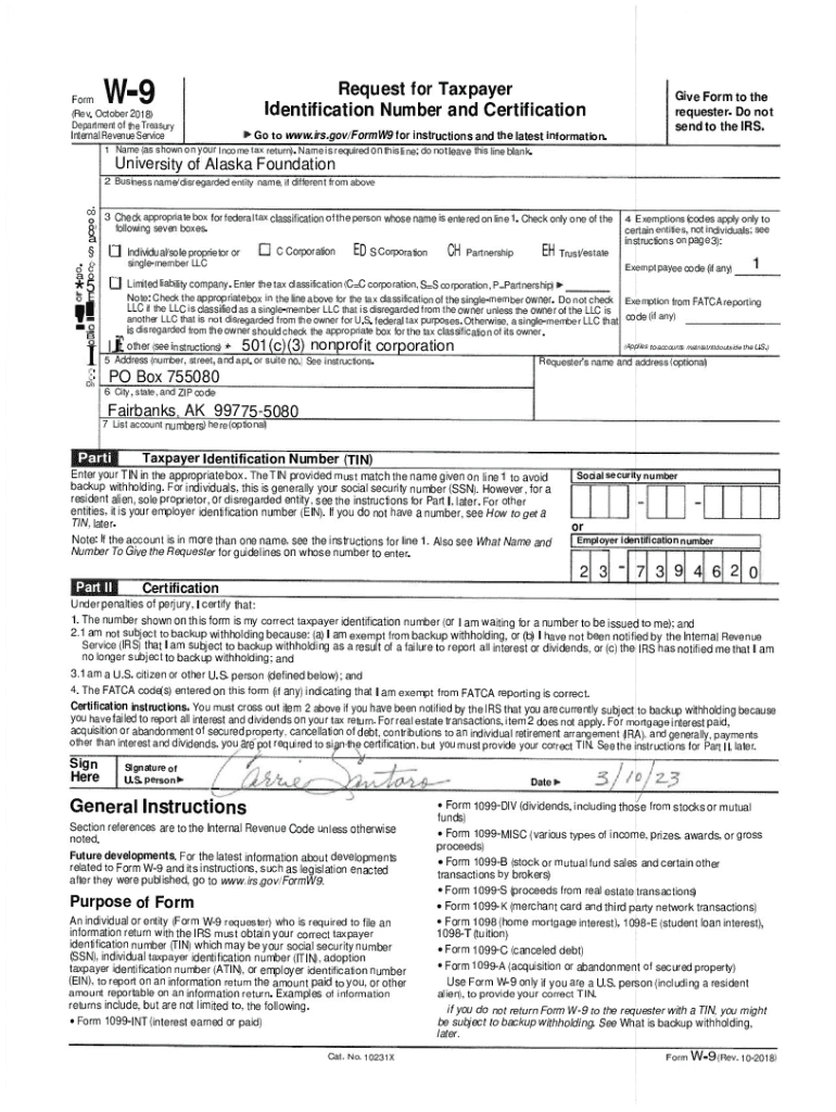 W9. Request for Taxpayer Identification Number and CertificationForm(Rev October2018) Department of the Treasury Internal Revenue Service 1 Name (as shown engine Form to the requester. Do not send