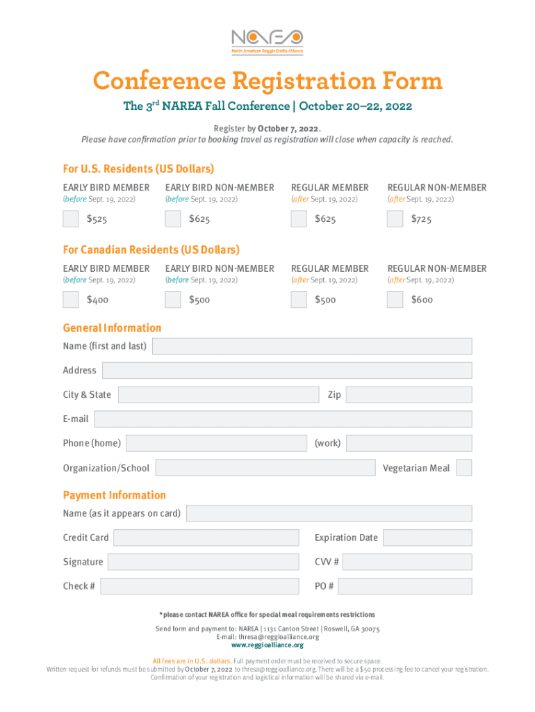 Conference Registration Form The 3rd AREA Fall Conference | October 2022, 2022Register by October 7, 2022. Please have confirmation prior to booking travel as registration will close when capacity