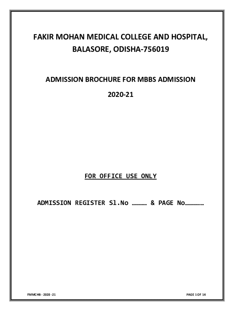 BALANCE, ODISHA756019ADMISSION BROCHURE FOR MBBS ADMISSION