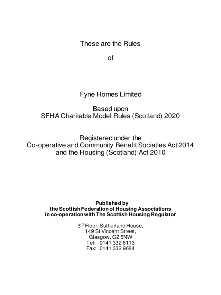 These are the Rules office Homes Limited Based upon FHA Charitable Model Rules (Scotland) 2020 Registered under the Cooperative and Community Benefit Societies Act 2014 and the Housing (Scotland)