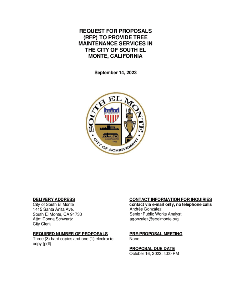 Get the free REQUEST FOR PROPOSALS (RFP) TO PROVIDE TREE ...