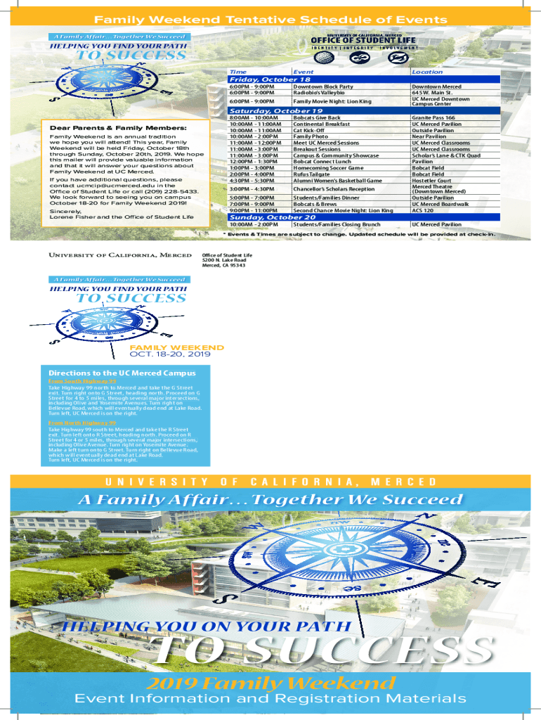 Get the free Family Weekend ScheduleDivision of Student Affairs