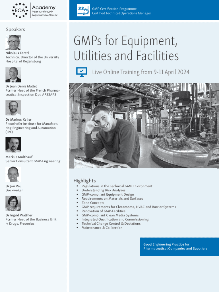 Get the free GMPs for Equipment, Utilities and Facilities - Live Online ...