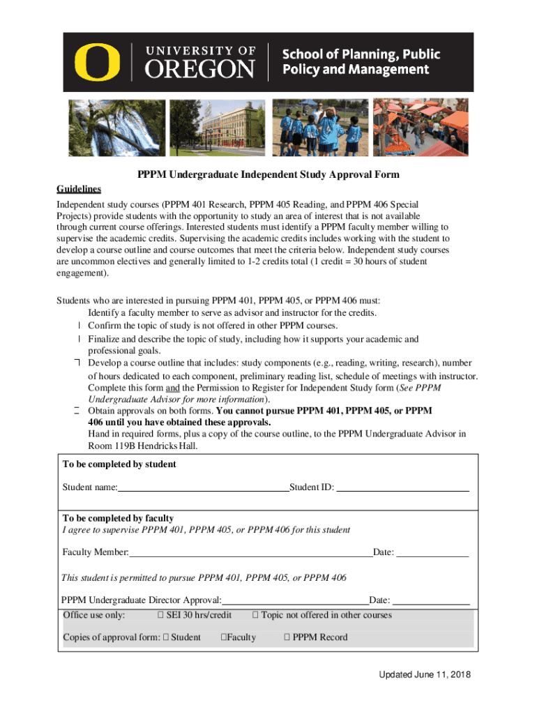 PPP Undergraduate Independent Study Approval Form Guidelines Independent study courses (PPP 401 Research, PPP 405 Reading, and PPP 406 Special Projects) provide students with the opportunity to study