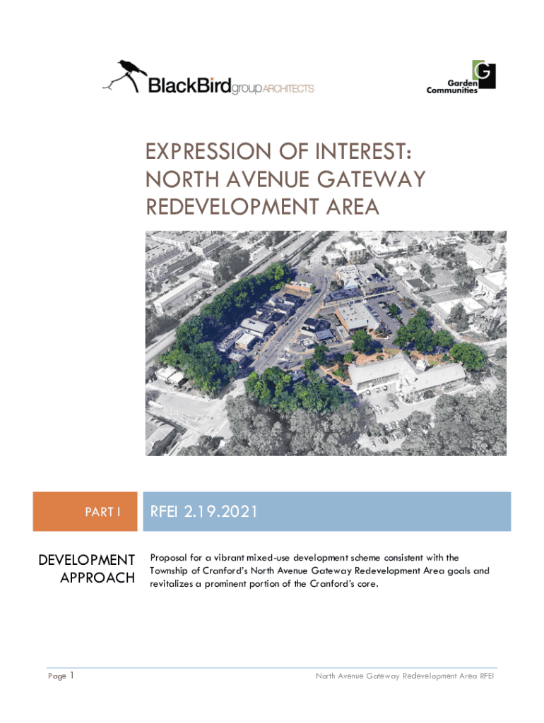 EXPRESSION OF INTEREST: NORTH AVENUE GATEWAY REDEVELOPMENT REPORT DEVELOPMENT APPROACH Page 1RFEI 2.19.2021 Proposal for a vibrant mixed use development scheme consistent with the Township of Cranford