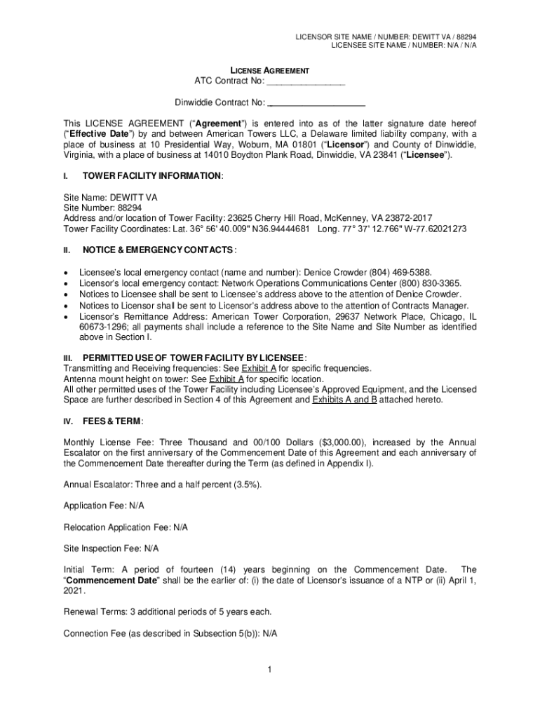 LICENSEE SITE NAME / NUMBER: N/A / N/LICENSE AGREEMENT