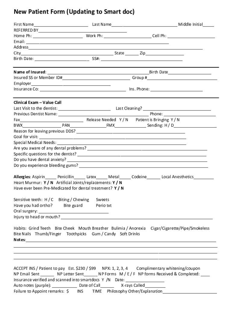 Get the free New Patient Form (Updating to Smart doc)