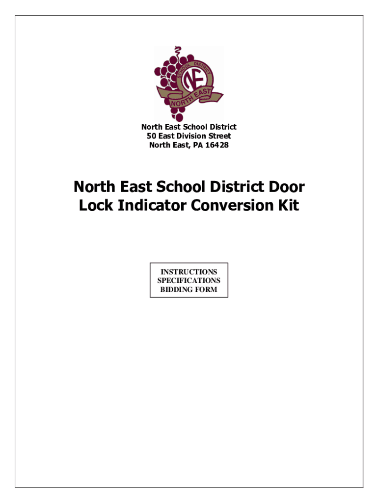 North East School District 50 East Division Street North East, PA 16428North East School District Door Lock Indicator Conversion Instructions SPECIFICATIONS BIDDING FORMATION 1.1 TABLE OF CONTENTS