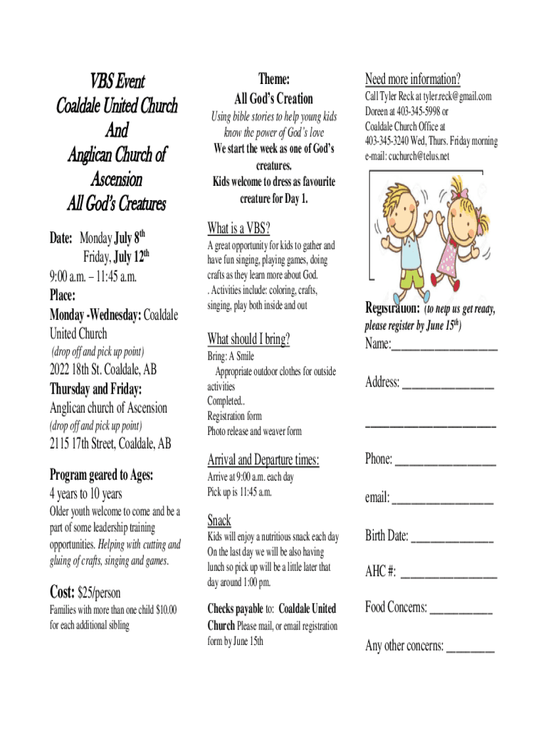 Fill out your vbs event coaldale united online with pdfFiller!