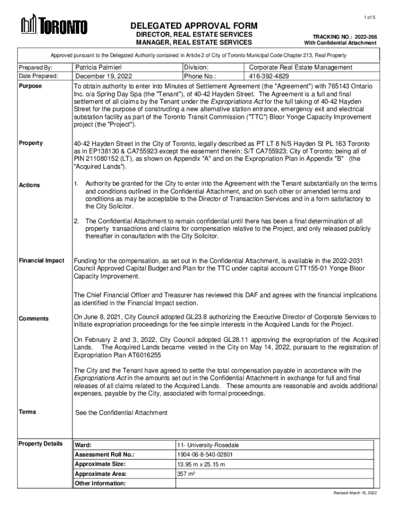 With Confidential AttachmentApproved pursuant to the Delegated Authority contained in