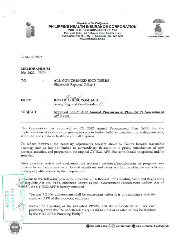 Republic of the PhilippinesPHILIPPINE HEALTH INSURANCE CORPORATION PIDLHEALTH REGIONAL OFFICE VIII Phi! Health Bldg., 167 P. Burgos Street, Taliban City Call Center: (02) 4417442 I Trunk line: (053)