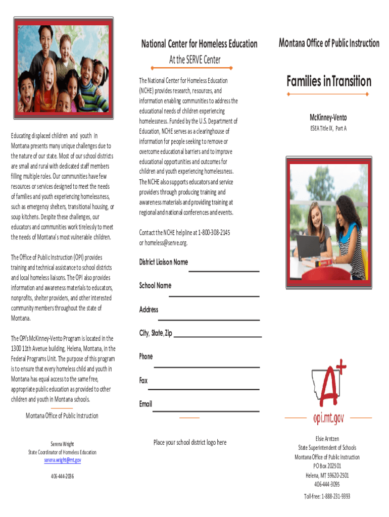 National Center for Homeless Education At the SERVE CenterEducating displaced children and youth in Montana presents many unique challenges due to the nature of our state. Most of our school districts