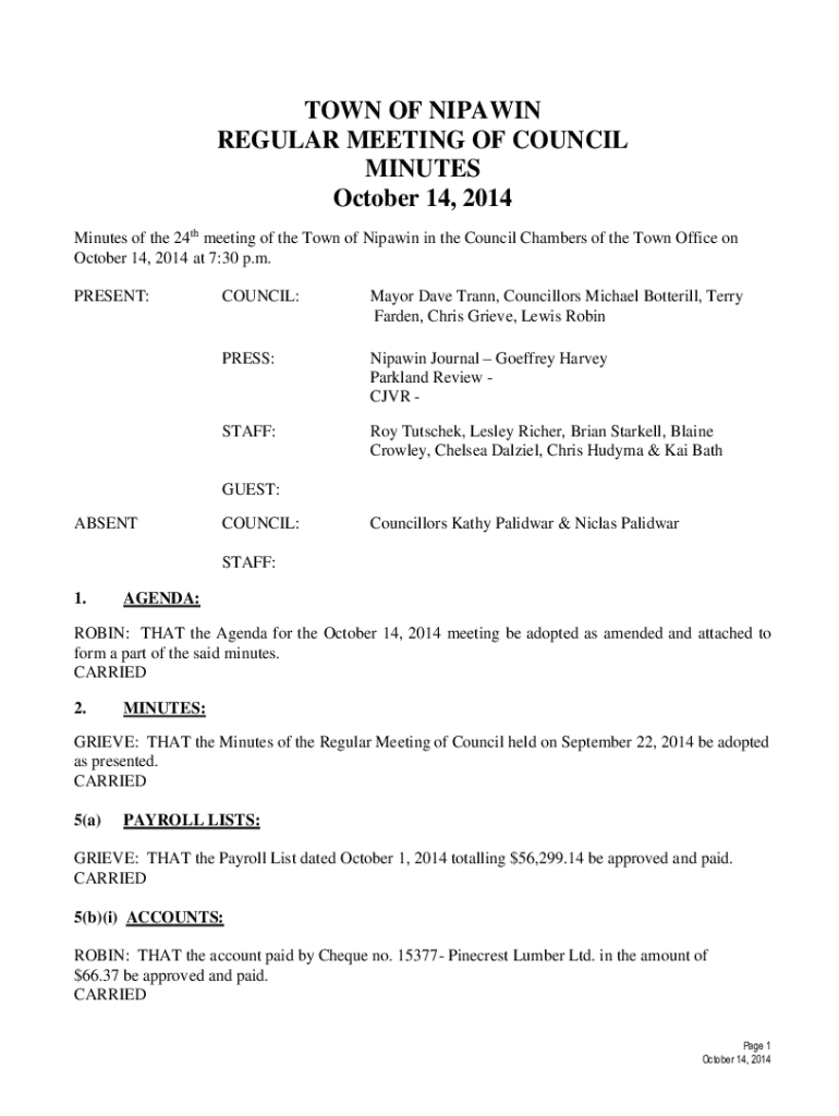 Minutes of the 24th meeting of the Town of Niacin in the Council Chambers of the Town Office on