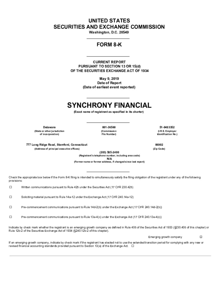 UNITED STATES SECURITIES AND EXCHANGE COMMISSION Washington, D.C. 20549FORM 8K CURRENT REPORT PURSUANT TO SECTION 13 OR 15(d) OF THE SECURITIES EXCHANGE ACT OF 1934 May 9, 2019, Date of Report (Date