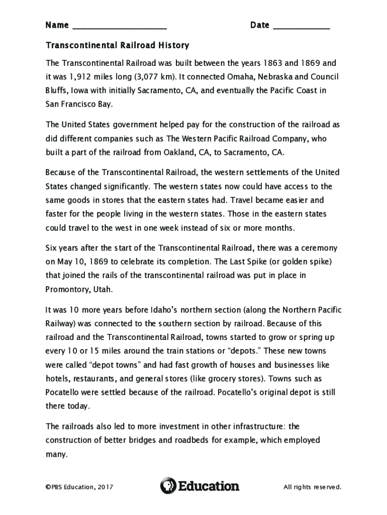 Fill out your name date transcontinental railroad online with pdfFiller!