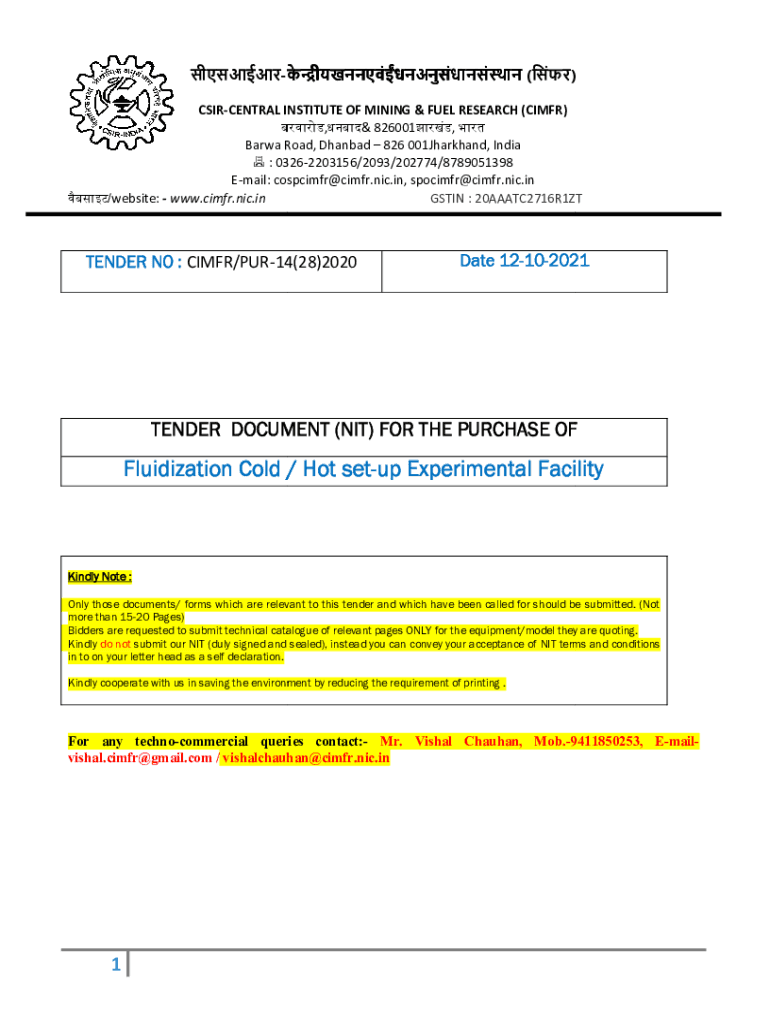 ( )) CSIRCENTRAL CENTRAL INSTITUTE OF MINING & FUEL RESEARCH (CIMFR) ,& 826001, Barwa Road, Dhanbad 826 001Jharkhand, India : 0326 03262203156/2093/202774/8789051398 Email: cospcimfr@cimfr.nic.in