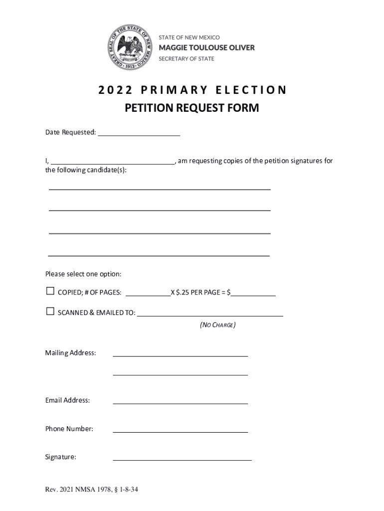 Get the free 2 0 2 2 P R I M A R Y E L E C T I O N PETITION REQUEST ...