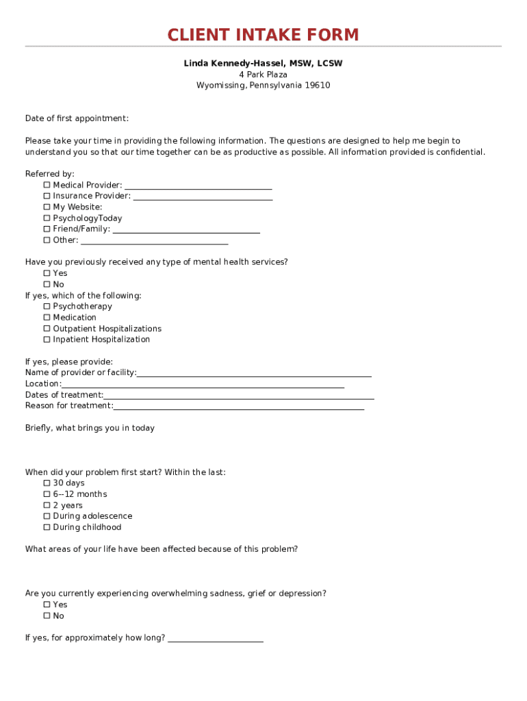 Get the free Client Intake Form