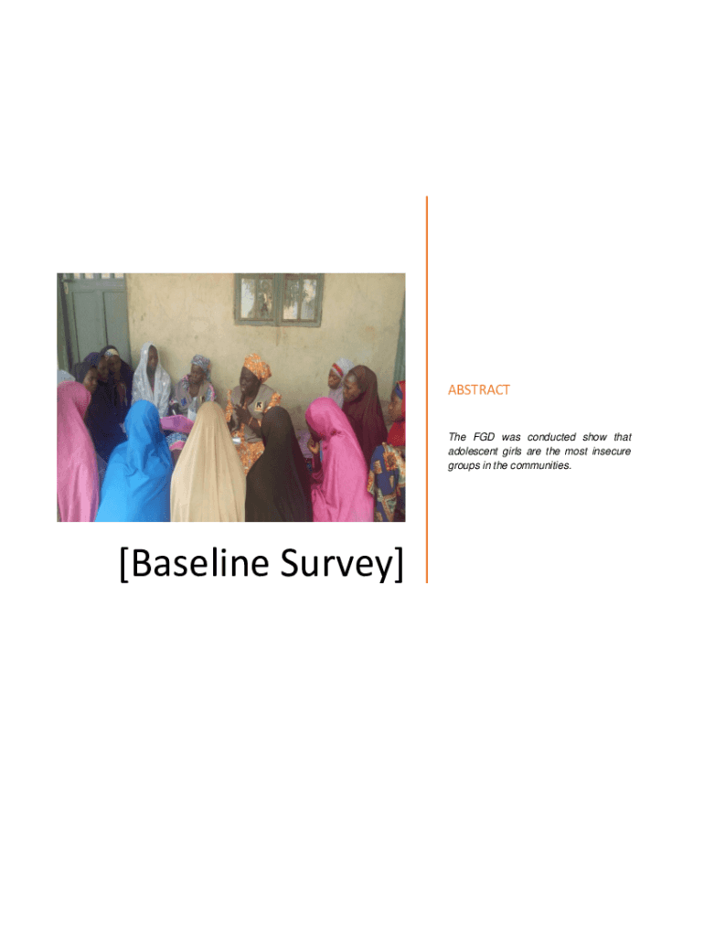 ABSTRACT The FGD was conducted show that adolescent girls are the most insecure groups in the communities.[Baseline Survey]Results from Baseline Survey On GenderBased Violence In Borno State Nigeria.A