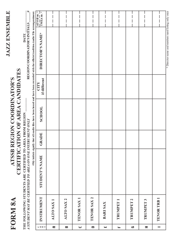 REGION COORDINATORS INITIALS ___#JAZZ ENSEMBLEGRADE