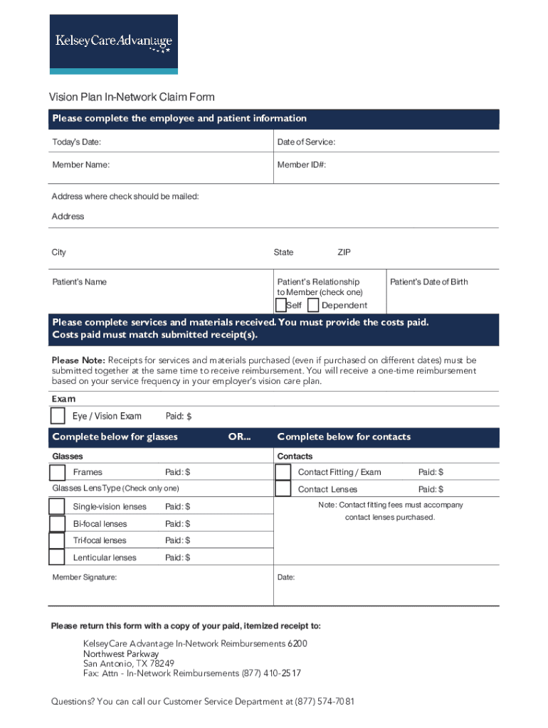 Any member of a health insurance plan who has paid for vision services or products out of pocket and wishes to seek reimbursement for those expenses is required to file a member reimbursement vision claim.