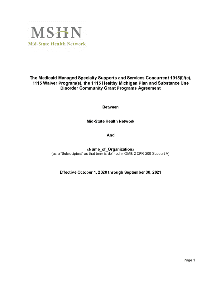 The Medicaid Managed Specialty Supports and Services Concurrent 1915(i)/(c), 1115 Waiver Program(s), the 1115 Healthy Michigan Plan and Substance Use Disorder Community Grant Programs AgreementBetween