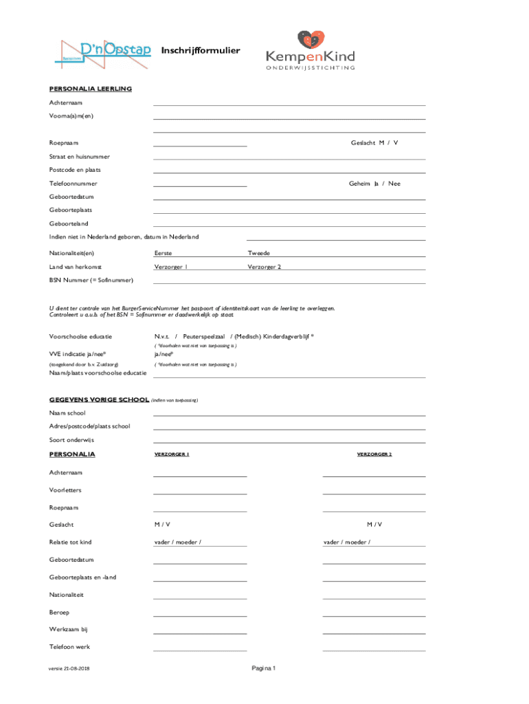 InschrijfformulierPERSONALIA LEERING
