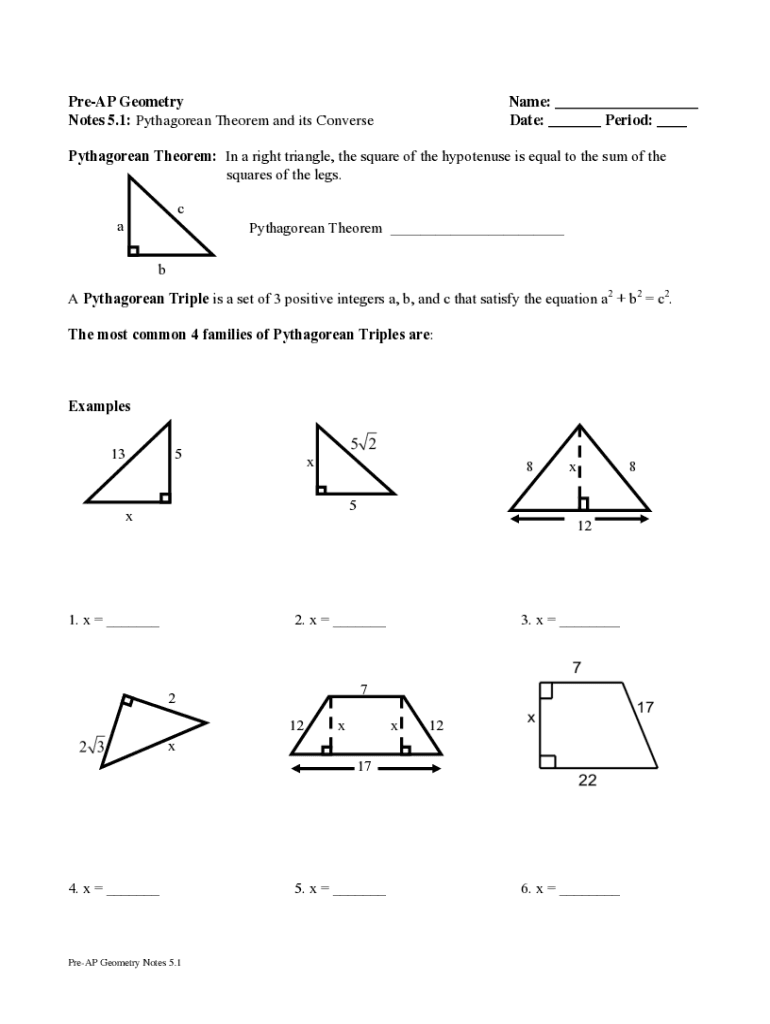 Get the free Notes 5.1: Pythagorean Theorem and its Converse Date