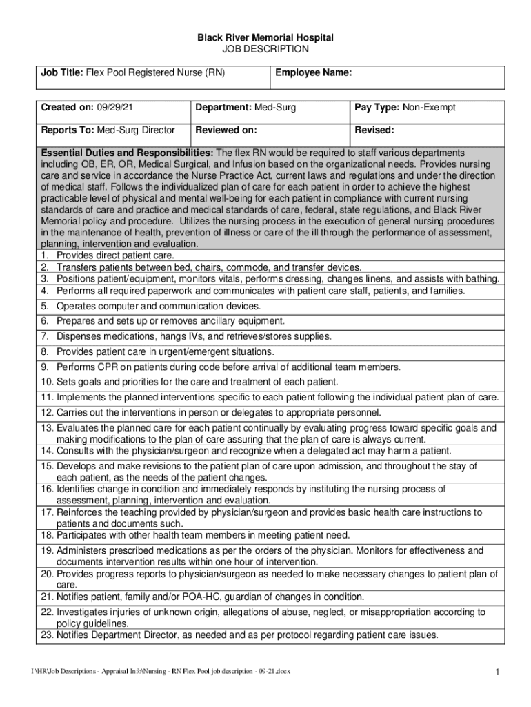Get the free nursing-rn-flex-pool-job-description-09-21. ...