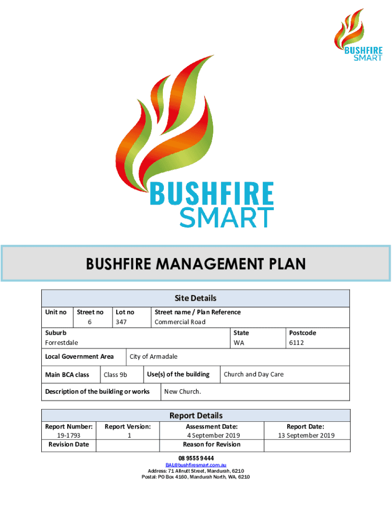 BUSHFIRE MANAGEMENT PLAN Site Details Unit street no 6Lot no 347Street name / Plan Reference Commercial Road State Suburb Forrest dale Local Government Area Main BCA classless 9bPostcode 6112City