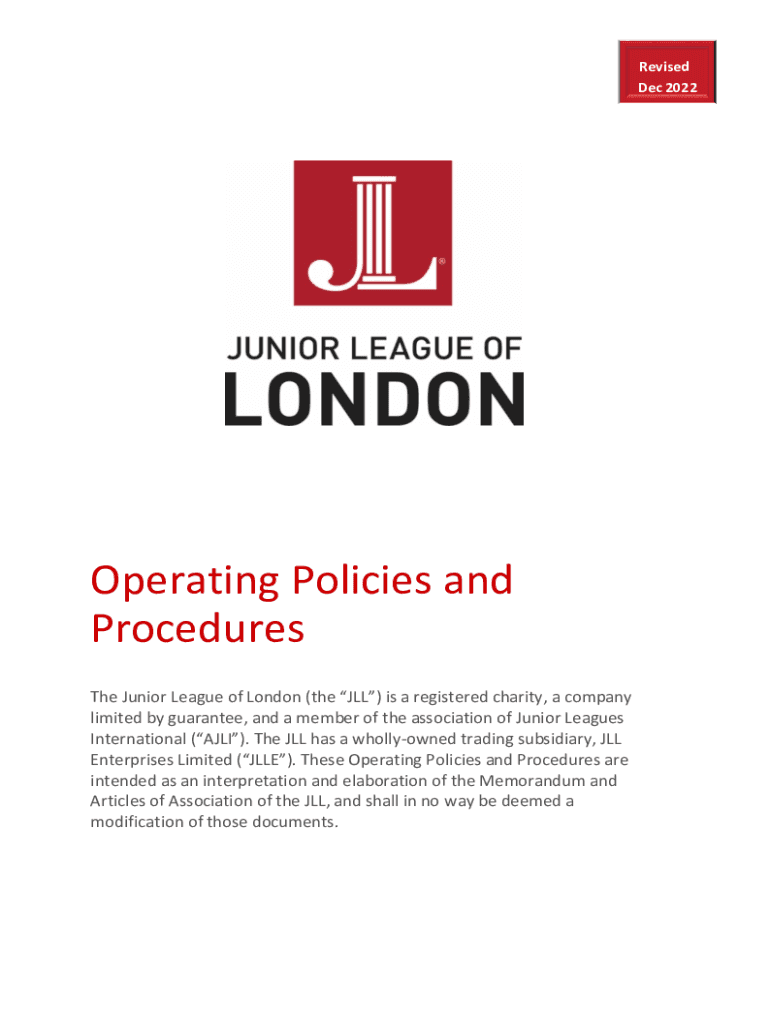 Revised Dec 2022Operating Policies and Procedures The Junior League of London (the ALL) is a registered charity, a company limited by guarantee, and a member of the association of Junior Leagues International