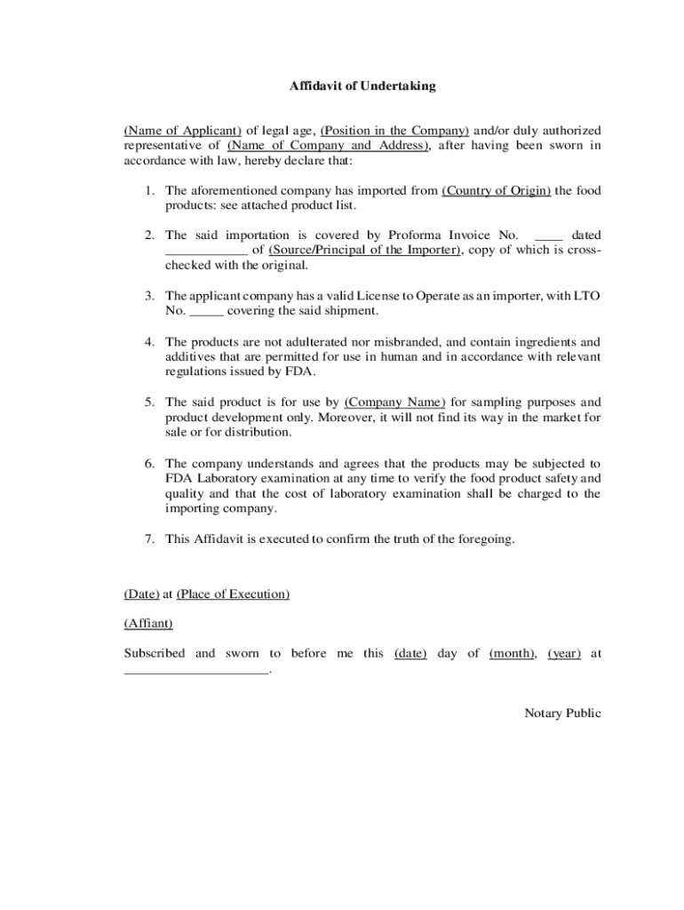 Affidavit of Undertaking(Name of Applicant) of legal age, (Position in the Company) and/or duly authorized representative of (Name of Company and Address), after having been sworn in accordance with