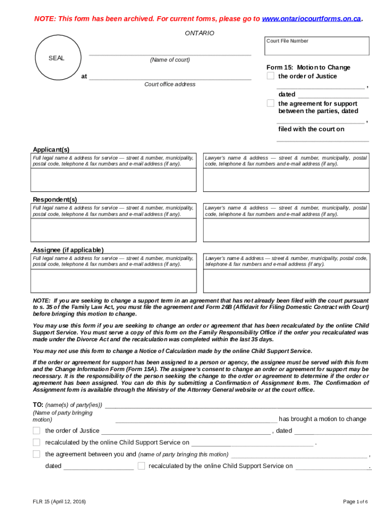 Who Can File the Ontario Motion to Change Order or Agreement?