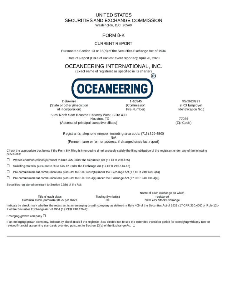 What is OCEANEERING INTERNATIONAL INC (: 8-K, Received Form?
