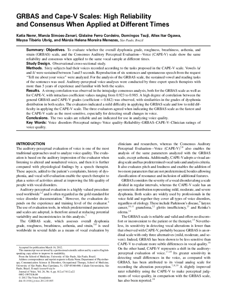 Get the free (PDF) GRBAS and Cape-V Scales: High Reliability and ... - edisciplinas usp