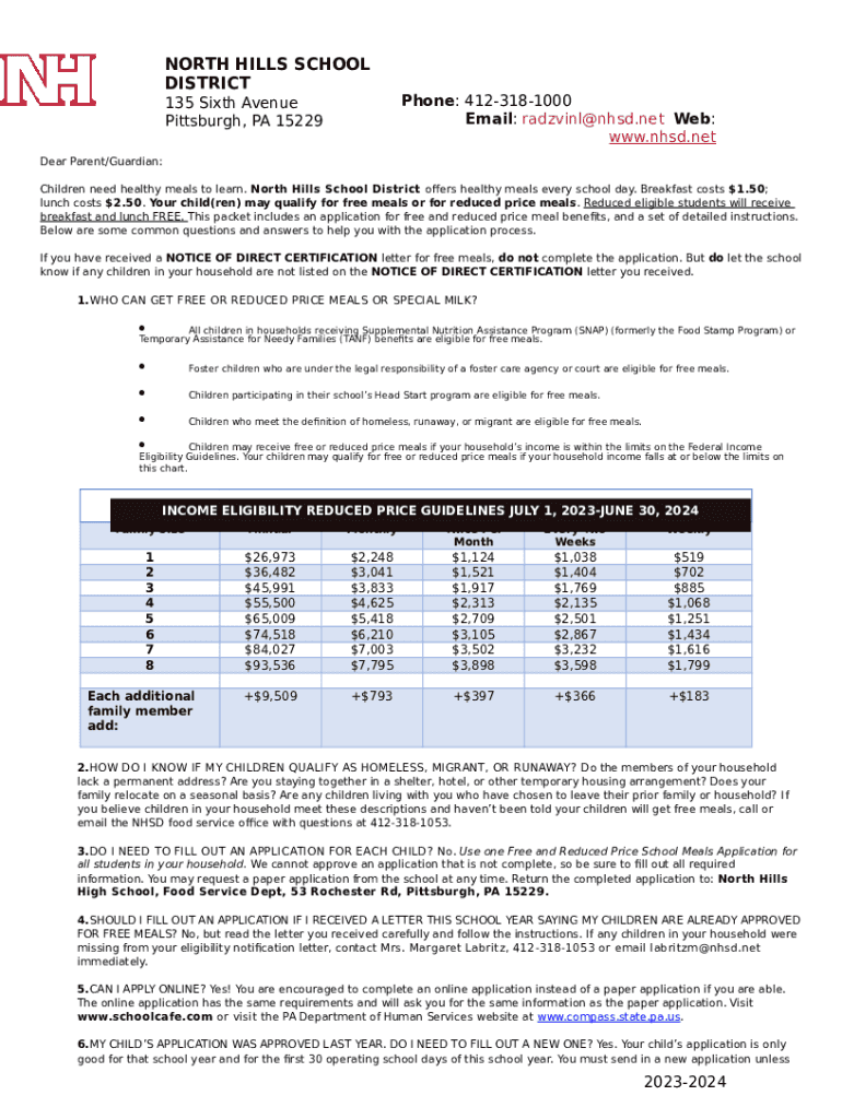Instructions for the form NHSD now using SchoolCafe for student cafeteria account ...