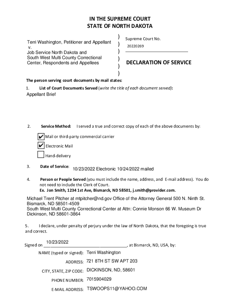 Get the free NO. 2022-0269 IN THE SUPREME COURT OF NORTH DAKOTA ...