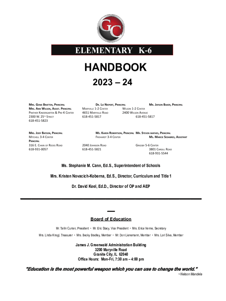HANDBOOK 2023 24Ms. Stephanie M. Cann, Ed.S., Superintendent of Schools Mrs. Kristen NovacichKoberna, Ed.S., Director, Curriculum and Title 1 Dr. David Keel, Ed.D., Director of OP and AEP___ __ Board