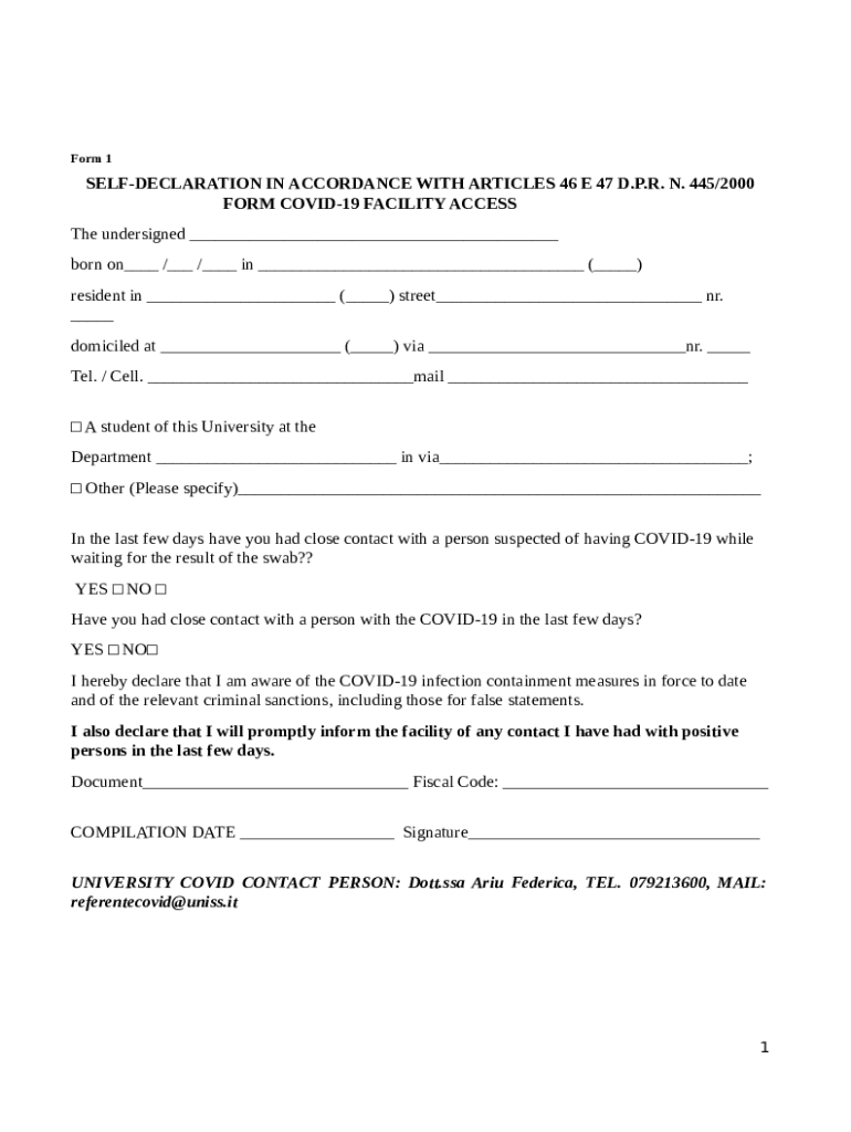 - Search for the Travel in Italy Self-declaration - veterinaria uniss from the PDFfiller’s library.