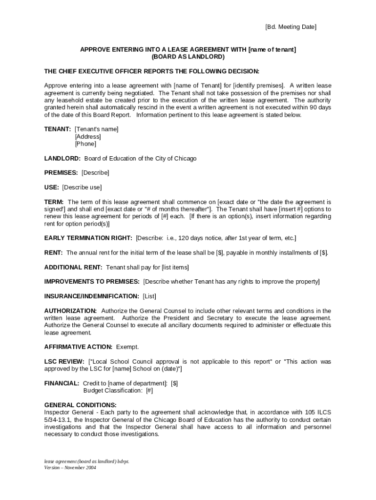 APPROVE ENTERING INTO A LEASE AGREEMENT WITH name of tenant template instructions