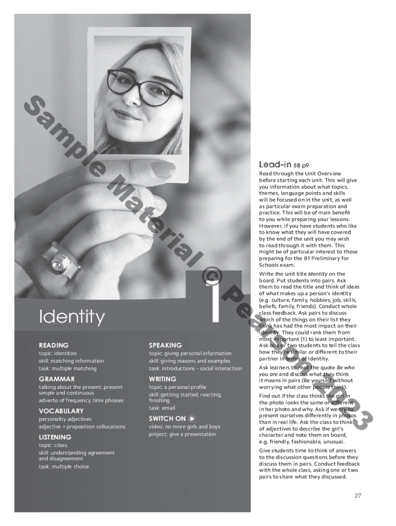 Plans leading SB p9M Ali her at 1PGRAMMARWRITINGtalking about the present: present simple and continuous adverbs of frequency, time phrases topic: a personal profile skill: getting started, reacting,