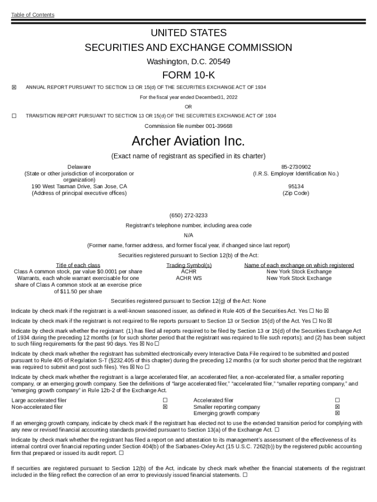 What is Archer Aviation Inc. ( - cloudfront.net Form?