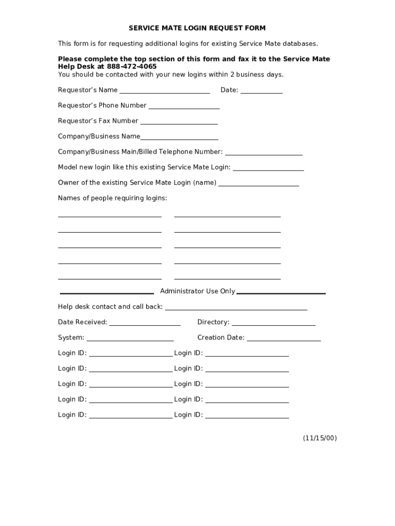The ServiceMate Login Request is a document you can get filled-out and signed for specific purposes. Next, it is provided to the relevant addressee to provide some info of any kinds. The completion and signing is able manually in hard copy or via a trusted tool e. g. PDFfiller. Such services help to send in any PDF or Word file without printing out. It also allows you to customize it for your needs and put a legal digital signature. Once finished, you send the ServiceMate Login Request to the recipient or several recipients by email and also fax. PDFfiller provides a feature and options that make your document of MS Word extension printable. It offers various settings when printing out. It doesn't matter how you file a form after filling it out - physically or by email - it will always look neat and clear. In order not to create a new document from scratch every time, make the original Word file as a template. Later, you will have an editable sample.