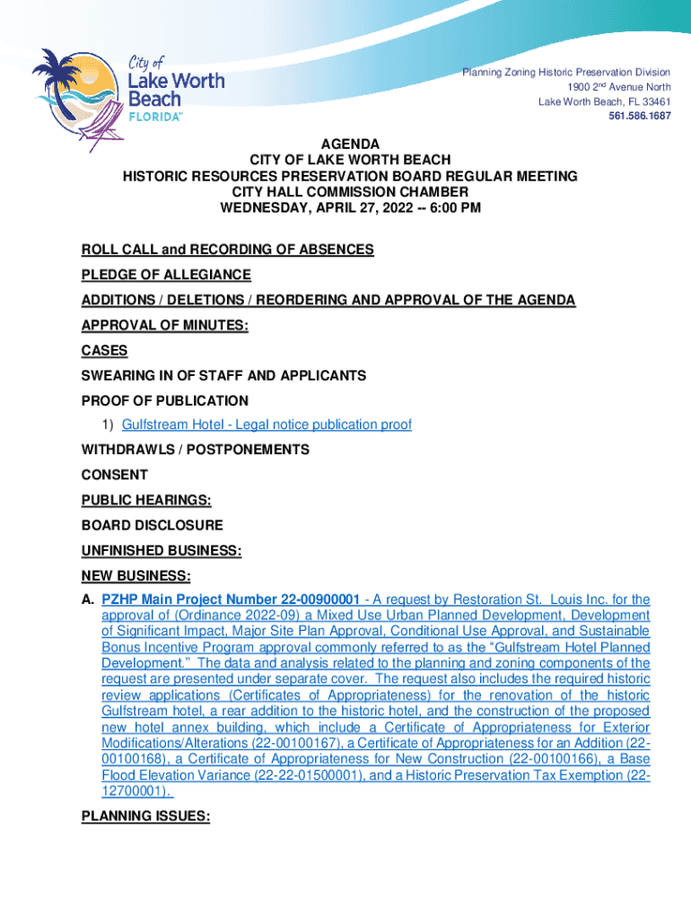 Planning Zoning Historic Preservation Division 1900 2nd Avenue North Lake Worth Beach, FL 33461 561.586.1687AGENDA CITY OF LAKE WORTH BEACH HISTORIC RESOURCES PRESERVATION BOARD REGULAR MEETING CITY