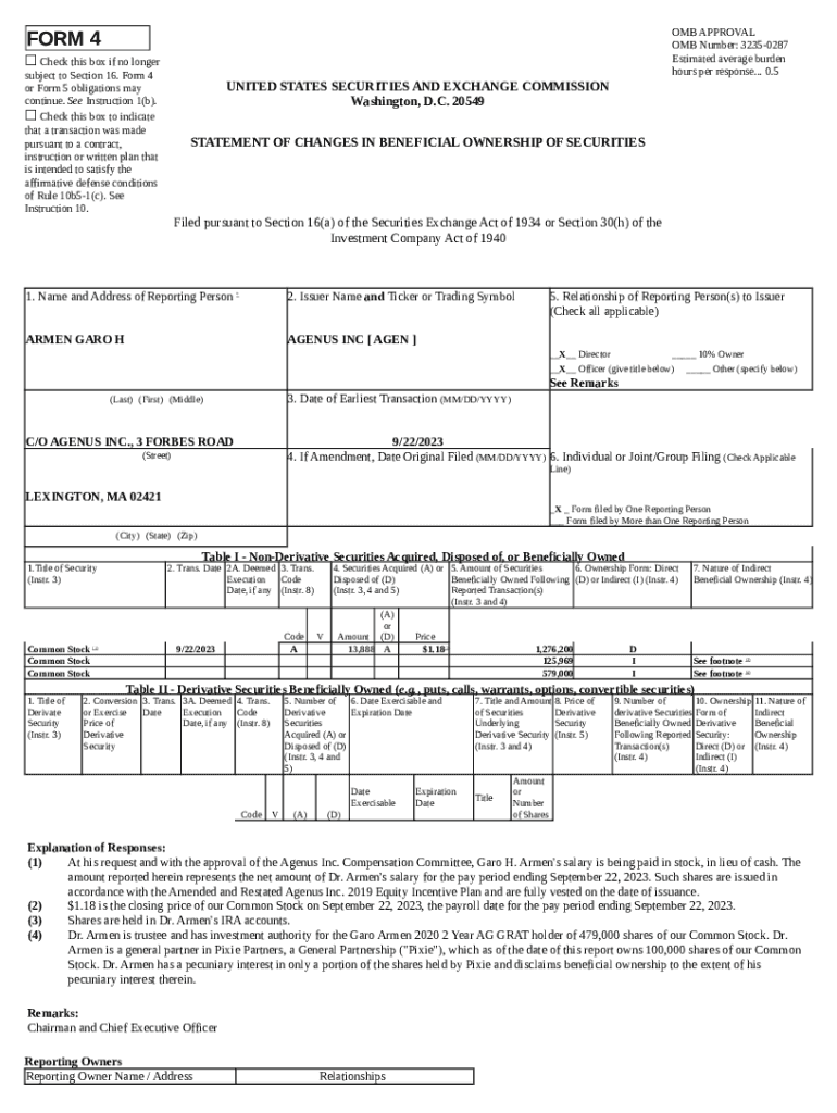 What is AGENUS INC (: 4, Received: 09/25/2023 12:43:17) Form?