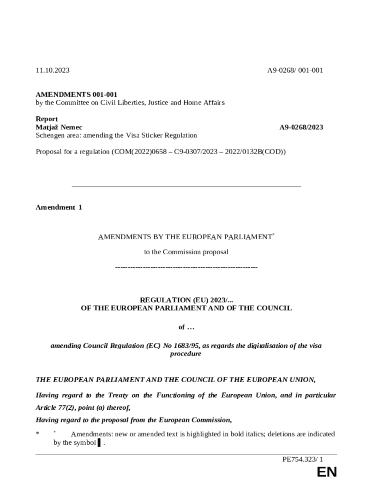 The Proposal for a Regulation amending Regulations (EC) No ... is a document which can be filled-out and signed for specified purposes. Next, it is furnished to the exact addressee to provide certain details of any kinds. The completion and signing may be done manually in hard copy or with an appropriate solution e. g. PDFfiller. Such services help to send in any PDF or Word file without printing out. It also allows you to edit it for your needs and put legit digital signature. Once done, the user sends the Proposal for a Regulation amending Regulations (EC) No ... to the recipient or several recipients by mail and even fax. PDFfiller is known for a feature and options that make your blank printable. It provides a variety of settings when printing out appearance. It doesn't matter how you will deliver a document - in hard copy or electronically - it will always look well-designed and organized. To not to create a new writable document from the beginning over and over, make the original file into a template. Later, you will have an editable sample.