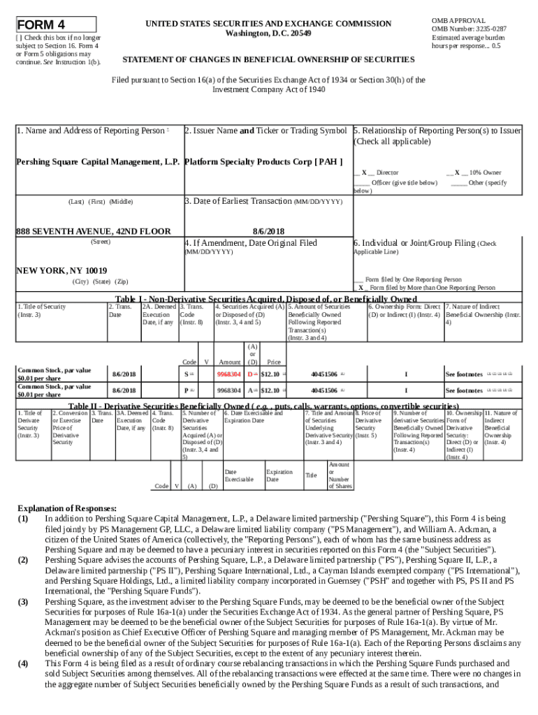 What is Plat Specialty Products Corp PAH Form?