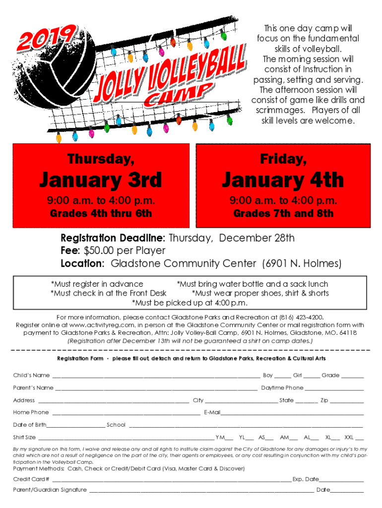 This one day camp will focus on the fundamental skills of volleyball. The morning session will consist of Instruction in passing, setting and serving. The afternoon session will consist of game like