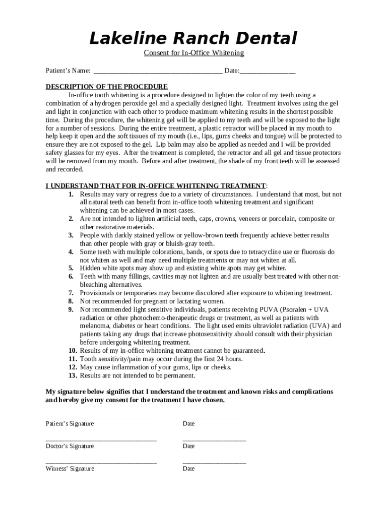 What is Zoom!Parkwood Ranch Dental CareMesa, Arizona Form?