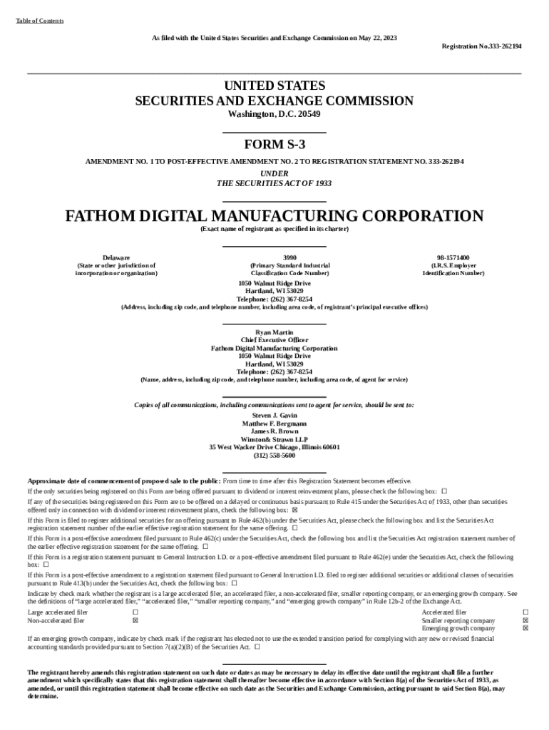 Fathom Digital Manufacturing Corp (: POS AM, Received template instructions